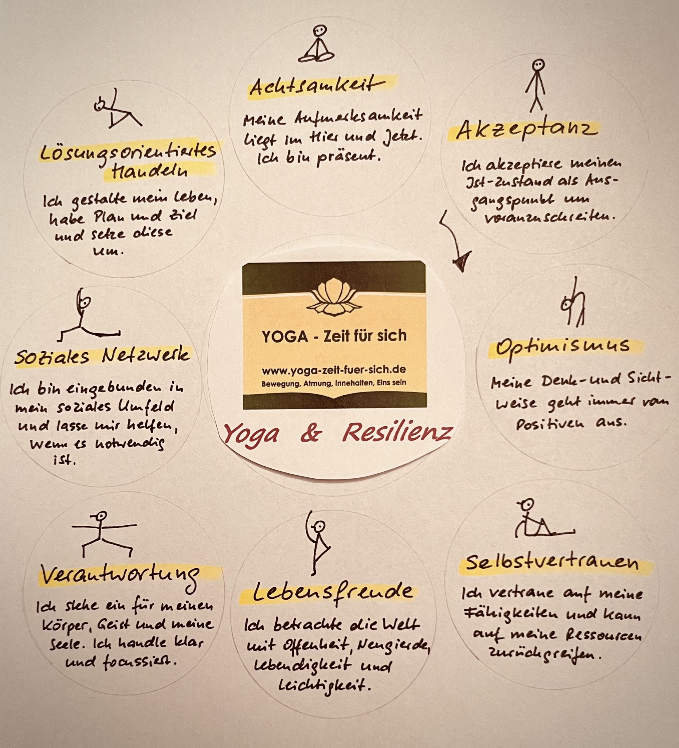 Mit der Praxis auf der Matte – kraftvoll, dynamisch und mit Hingabe – übten wir Akzeptanz, Optimismus, Selbstvertrauen, Lebensfreude, Verantwortung, soziales Netzwerk, lösungsorientiertes Handeln und Achtsamkeit. Es ging darum, eine Widerstandskraft in uns aufzubauen, um den Herausforderungen des Lebens gewachsen zu sein und diese zu meistern.